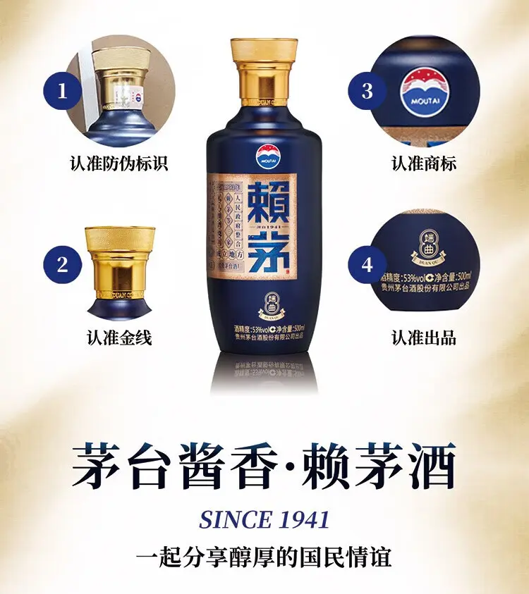 赖茅端曲2.0 酱香型白酒 53度 500ml 单瓶礼盒装